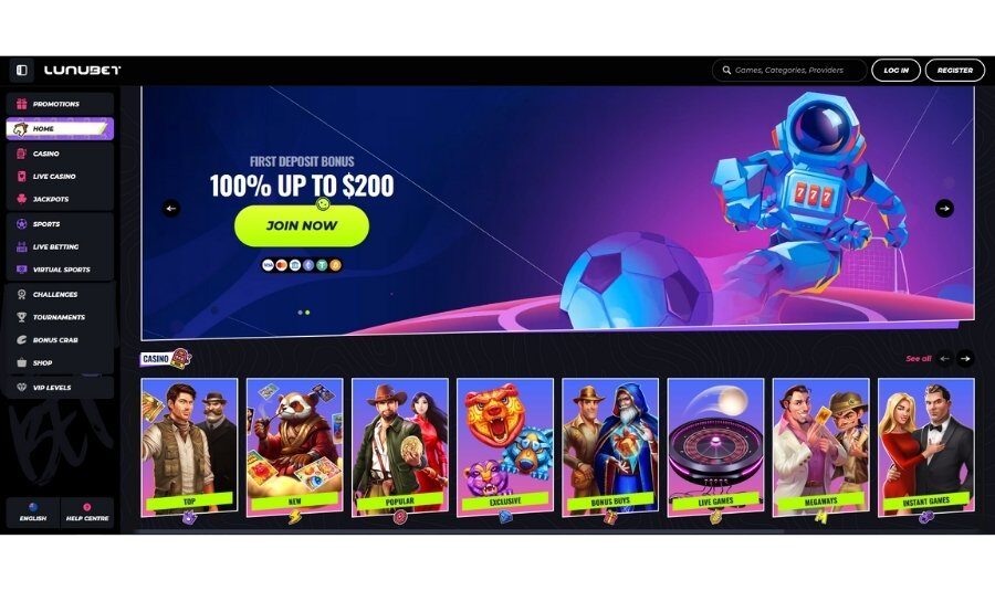 Lunubet Casino features a massive library of over 10,000 games from top providers like Pragmatic Play, NetEnt, Evolution, Playtech, and Play’n Go. The lobby has very well organized categories with game indicators like Top, New, Popular & Exclusive. We noticed that there aren’t advanced game sorting filters, but there’s a search feature that works really well. A plus is that demo versions are available even without logging in, which made it easy for us to try Lunubet casino games before committing real money.